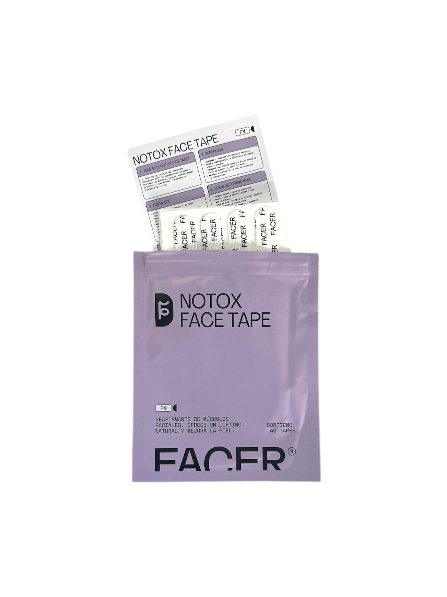 incluye 40 cintas precortadas para distintas zonas del rostro que se adaptan a tus necesidades y objetivos